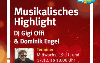 DJ Gigi Offi & Dominik Engel (Saxophon) Ein Mix aus lässigen Beats und Live-Saxophon – moderne Christmas-Vibes [...] chef2025-11-10T14:20:34+01:0010. November 2025| Weiterlesen