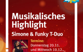 Simone & Funky T – Duo „Feel-good grooves & Christmas classics“ – ein Abend voller Soul, [...] chef2025-11-10T14:22:48+01:0010. November 2025| Weiterlesen